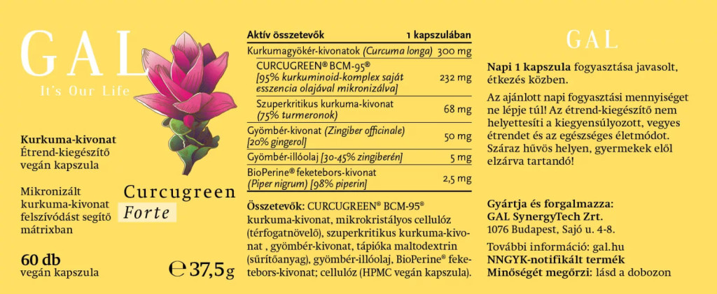 Szájon át szedve is képes a kurkuma fő hatóanyagát, a kurkumint nagy mennyiségben a véráramba juttatni egy szabadalmaztatott, teljesen természetes megoldás segítségével. A kurkuma illóolaját és teljes spektrumú gyömbér-kivonatot is tartalmaz. A kurkumin kivonatolása 100%-ban napelem-működtetésű gyárban történik.