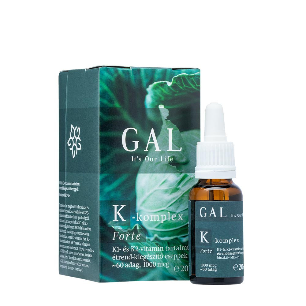 Termékünk a megfelelő felszívódás és stabilitás biztosítása érdekében RSPO-minősítésű (fenntartható gazdaságból származó, „orangután-barát”) pálma- és kókuszolajból nyert MCT-olajban oldva tartalmazza hatóanyagait természetes formájukban, azaz K1-vitamint és a K2-vitamin bioaktív MK-7-es szója allergént sem tartalmazó változatát. (Egyes termékek a K2 MK-7-nek a nem természetes, kevésbé hatásos „cisz-” formáját is tartalmazzák, a GAL K-komplex csak a hatásos, természetes „transz-” formáját.)