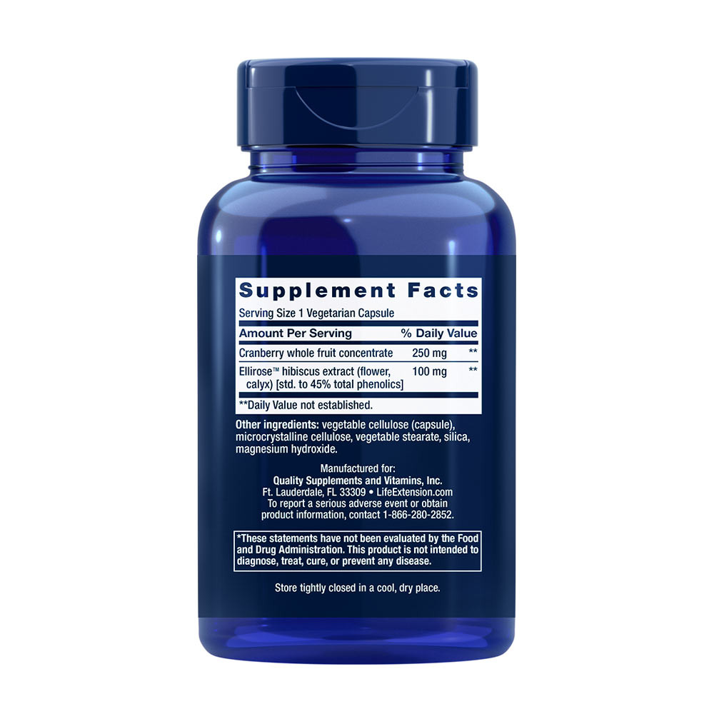 A Life Extension Optimized Cran-Max® egy erőteljes áfonya gyümölcskoncentrátumot biztosít Ellirose™ Hibiscus sabdariffa kivonattal a húgyutak egészségének támogatása érdekében.