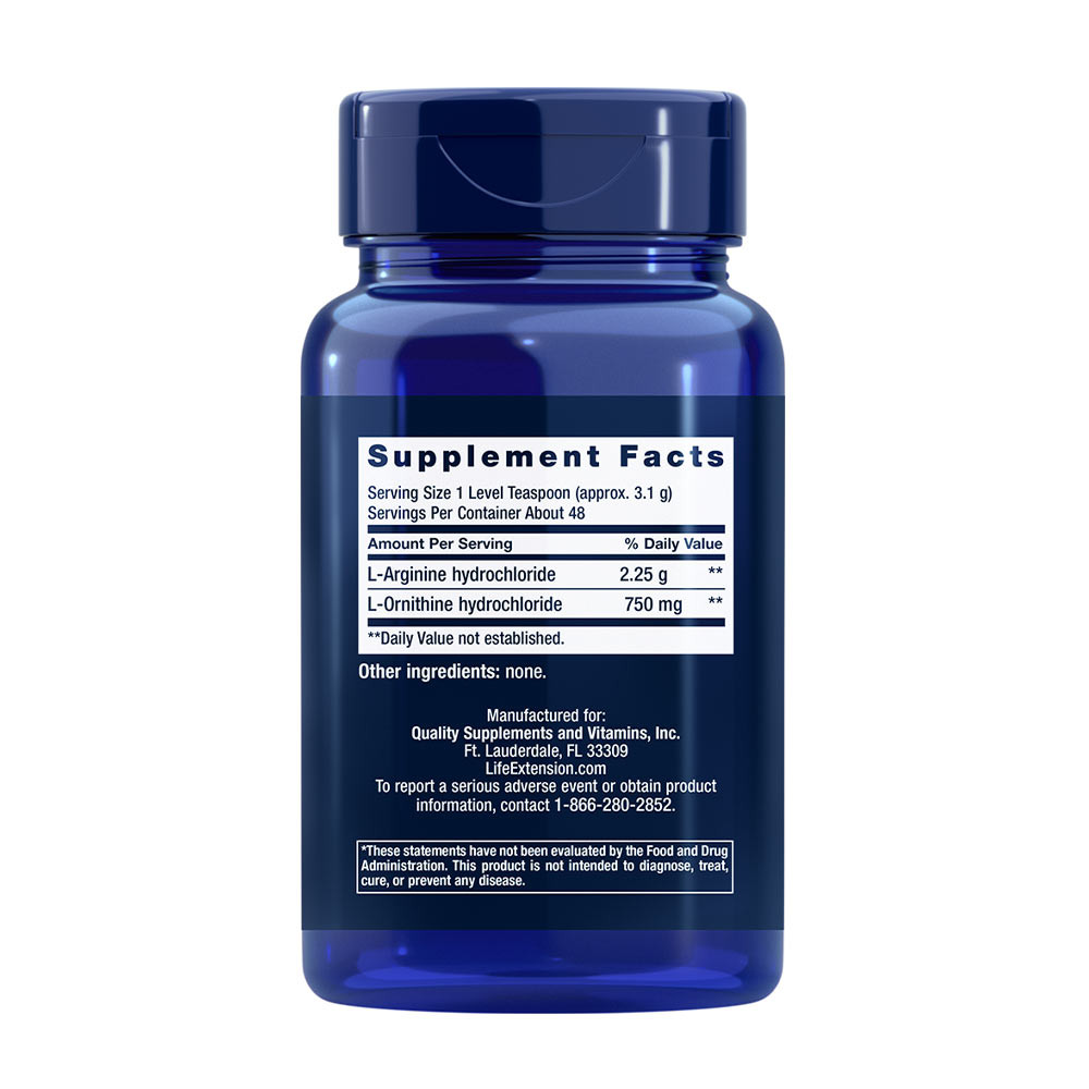 A Life Extension Arginine Ornithine Powder fehérjeépítő aminosavakat, arginint és ornitint kombinál, hogy elősegítse az izmok egészségét és az edzés utáni regenerációt.