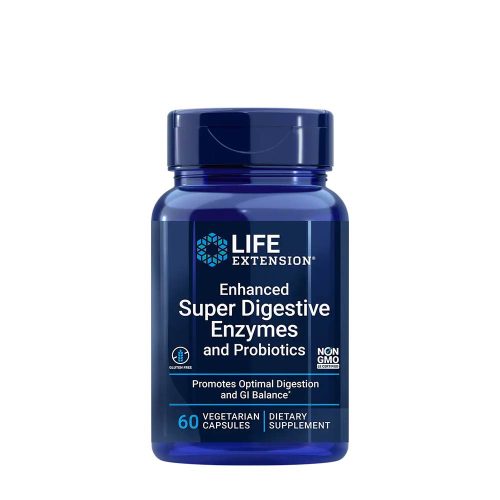 Az Enhanced Super Digestive Enzymes and Probiotics egy emésztést elősegítő étrend-kiegészítő és probiotikum, amely mindazoknak kedvező lehet, akik megnövelnék a nehezen emészthető zöldségek, hüvelyesek, gyümölcsök vagy leveles zöldségek fogyasztását. Az emésztőenzimek tudományosan összeállított keverékét, valamint egy jótékony probiotikus törzset tartalmaz az egészséges glikémiás index (GI) egyensúly fenntartása érdekében. Ez a formula segít megemészteni a leveles zöldségeket, a hüvelyeseket, a fehérjéket, valamint a nehezen emészthető keményítőt és zsírokat – plusz segít fenntartani az egészséges mikrobiomát is.