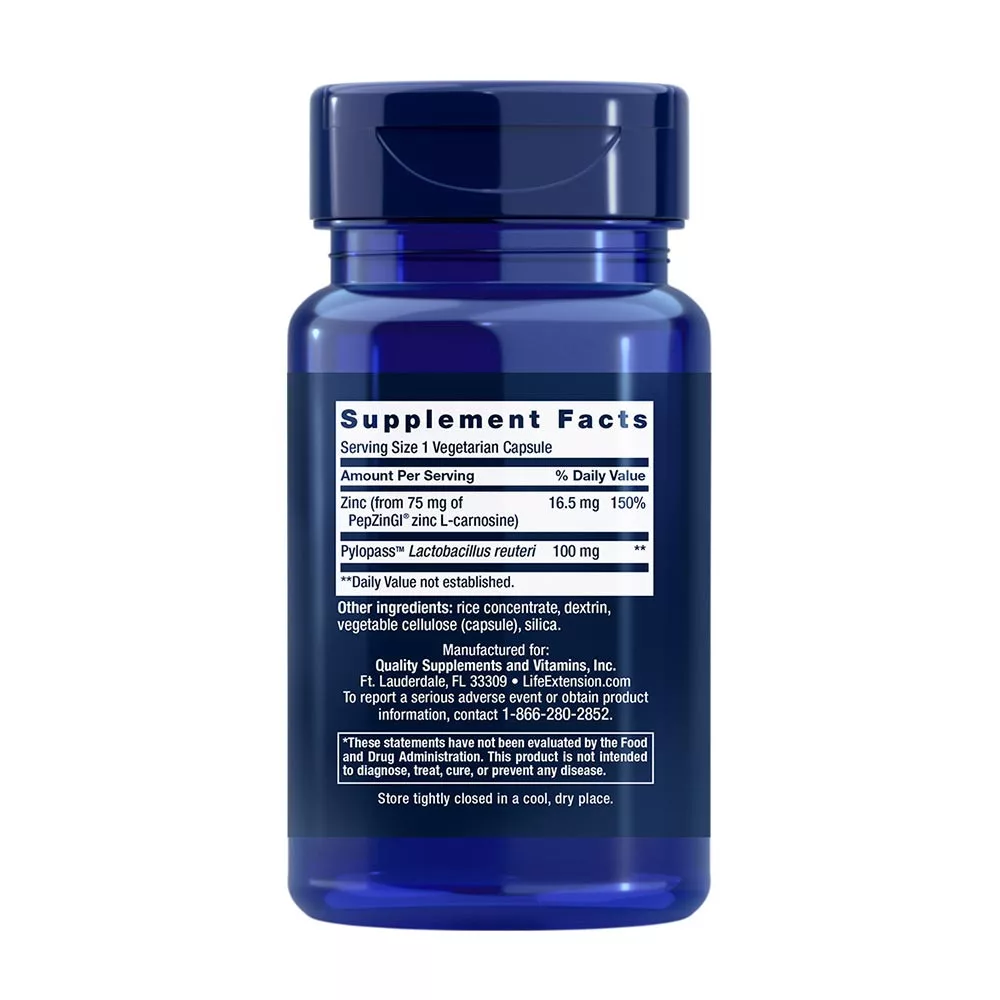 A cink nyomelem segíti a gyomor egészségét. Ha pedig az aminosavból származó karnozinnal kombináljuk (cink-L-karnozin formájában), a hatás még kifejezettebb. Ez az átfogó megközelítés csak az egyik ok, amiért érdemes megbízni a Life Extension® tudományosan alátámasztott táplálékkiegészítőjében.