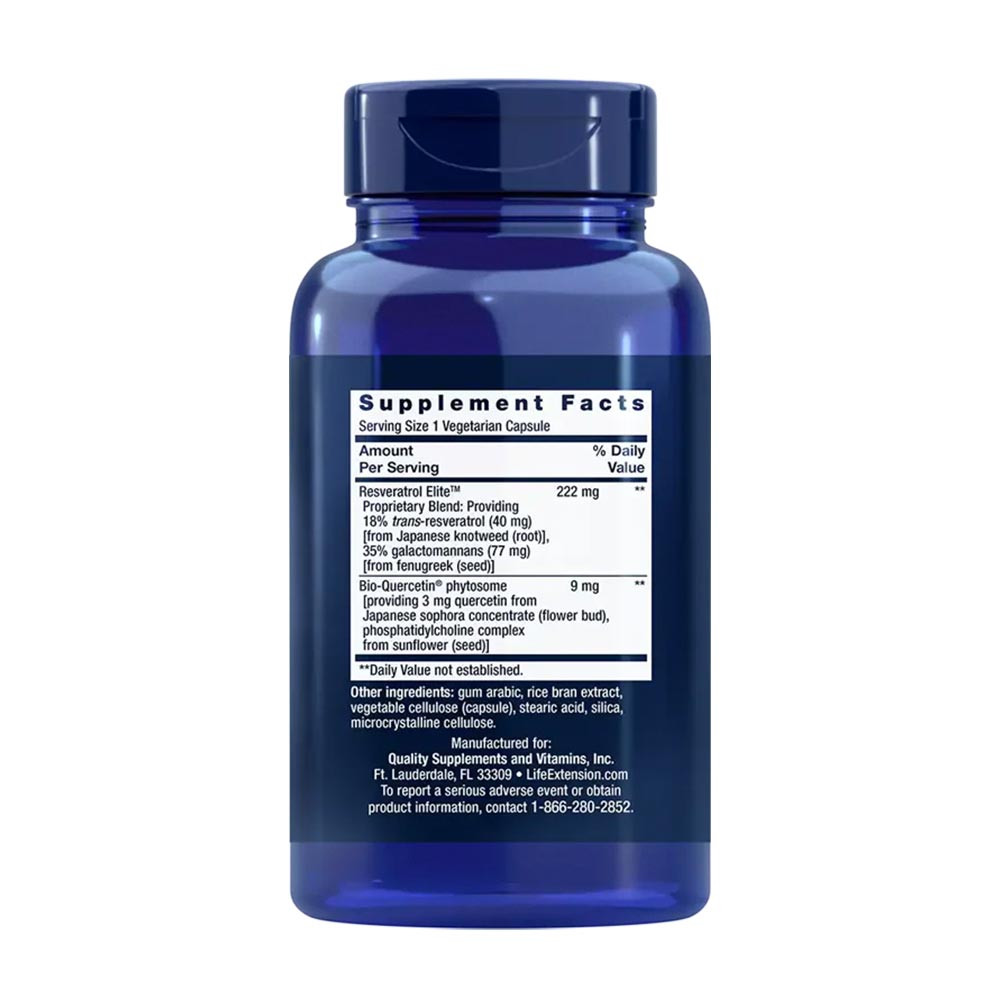 Az Optimized Resveratrol Elite formula a resveratrolt kiegészítő növényi vegyületet, a kvercetint is tartalmazza.