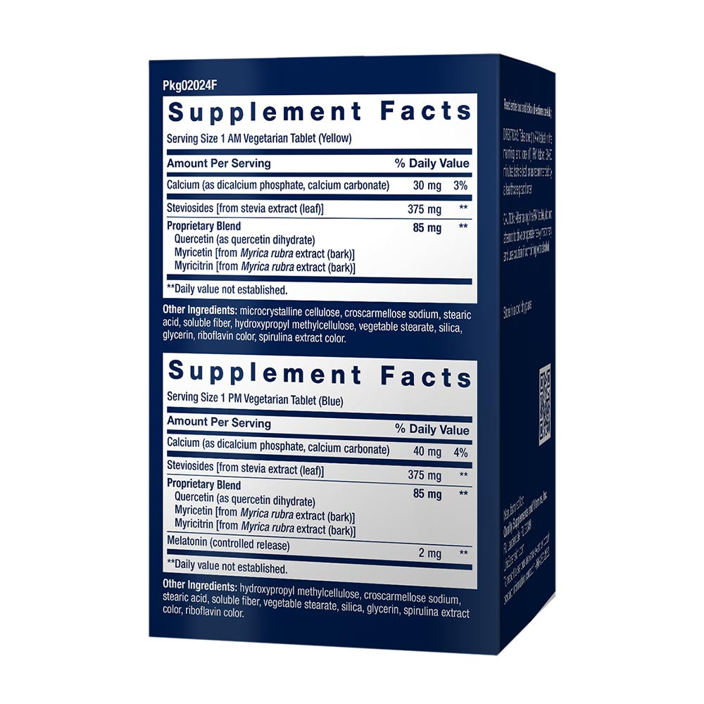 A Triple Action Blood Pressure minden egyes AM tabletta kvercetin, miricitrin és miricetin flavonoidokat tartalmaz. Bizonyított, hogy ezek a fitonutriens vegyületek számos mechanizmuson keresztül támogatják az egészséges érrendszeri működést és elősegítik a már a normál tartományon belüli egészséges vérnyomásszintet.