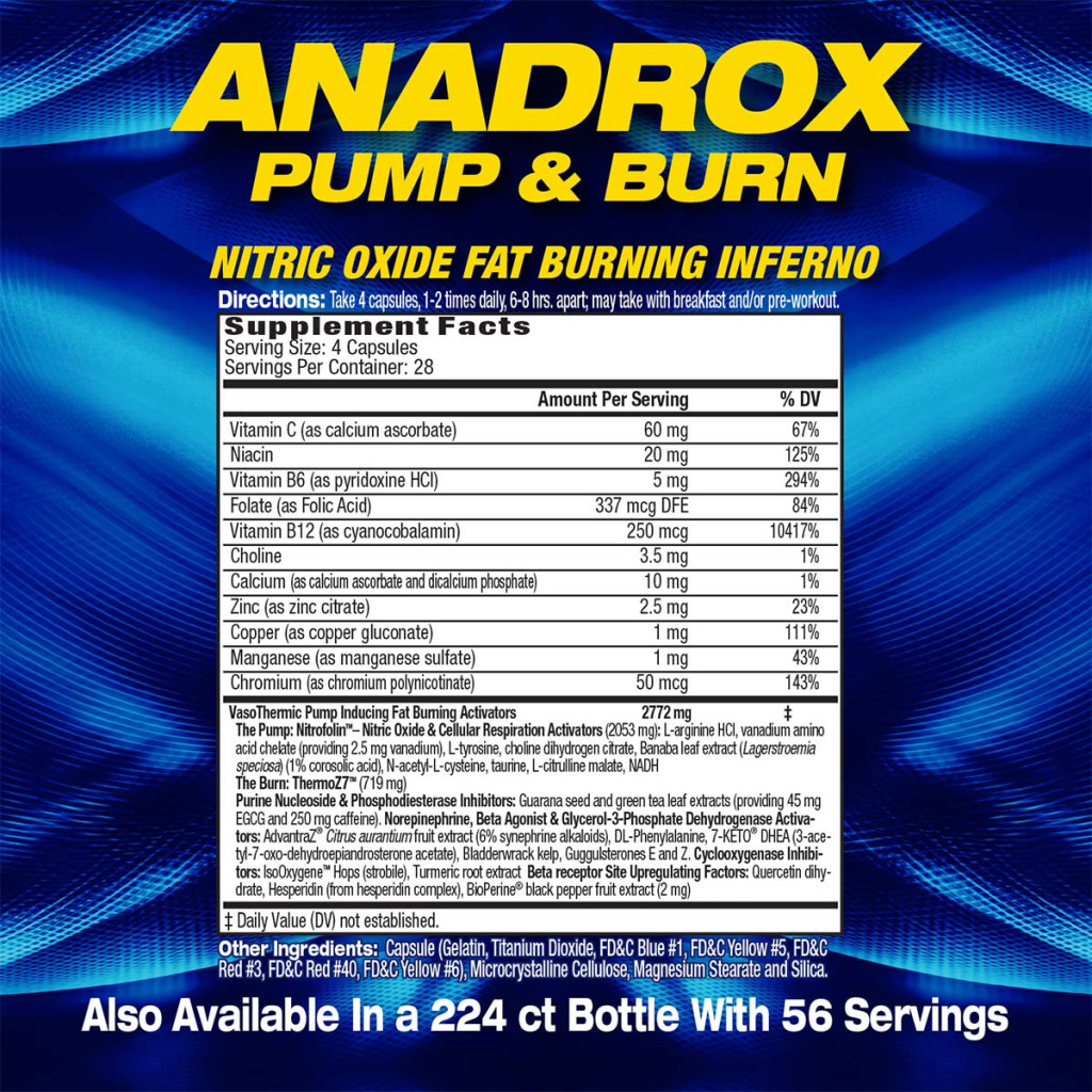 ANADROX - PUMP AND BURN! Az ANADROX Pump Burn a világ első és egyetlen táplálék-kiegészítője, amely a nitrogén-monoxid (NO) erejét egy teljes spektrumú zsírégető-mátrixszal kombinálja, amely egyszerre produkál drámai anabolizmust, bőrrepesztő bedurranást és olyan erőteljes vazotermikus zsírégetést melyet még sosem tapasztaltál!