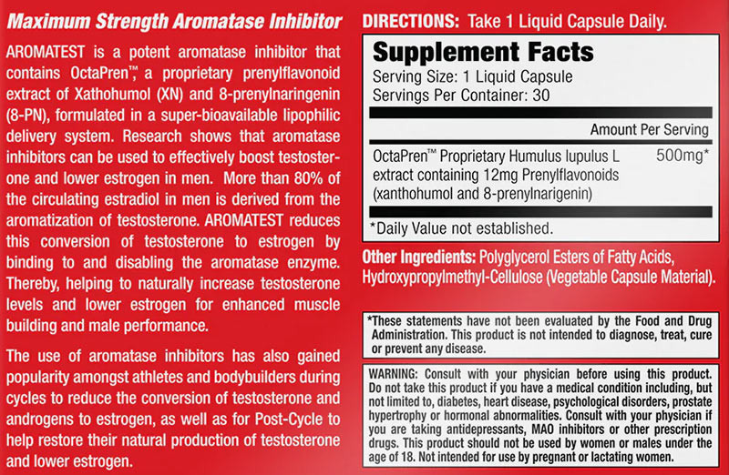 1. A természetes sportolók, akik a tesztoszteronszintet szeretnék növelni és a T:E arányukat javítani, szedhetik az AROMATEST-et. Továbbá, a teszt szintek növelése érdekében tesztoszteron fokozó kiegészítőket szedő természetes sportolóknak is fontolóra kell venniük az AROMATEST szedését, hogy megakadályozzák az ösztrogénné történő átalakulást.