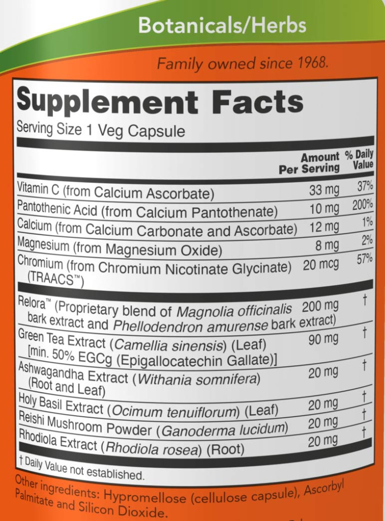 A NOW® Adrenal Stress Support egy botanikai, egészséges táplálkozást segítő formula, amely természetes módon támogatja a mellékvese stresszreakciót. * A mellékvesék segítenek a testnek, a fizikai, a mentális és az érzelmi stresszhatásokhoz való alkalmazkodásban a kortizol előállítása révén. * Amikor a stressz a mindennapi élet része, a kortizol és a vércukorszint, következésképpen az étvágy és a testtömeg egészséges egyensúlyának fenntartása nehézségekbe ütközhet. * A NOW® Super Cortisol Support olyan étrendkiegészítő elemeket kombinál, mint például a C-vitamin, a pantoténsav és a króm-chelavite Relora®-val. Ez a gyógynövény-kombináció a mellékvese-funkció támogatására, a stressz enyhítésére és az egészséges táplálkozási szokások kialakítására szolgáló készítmény.