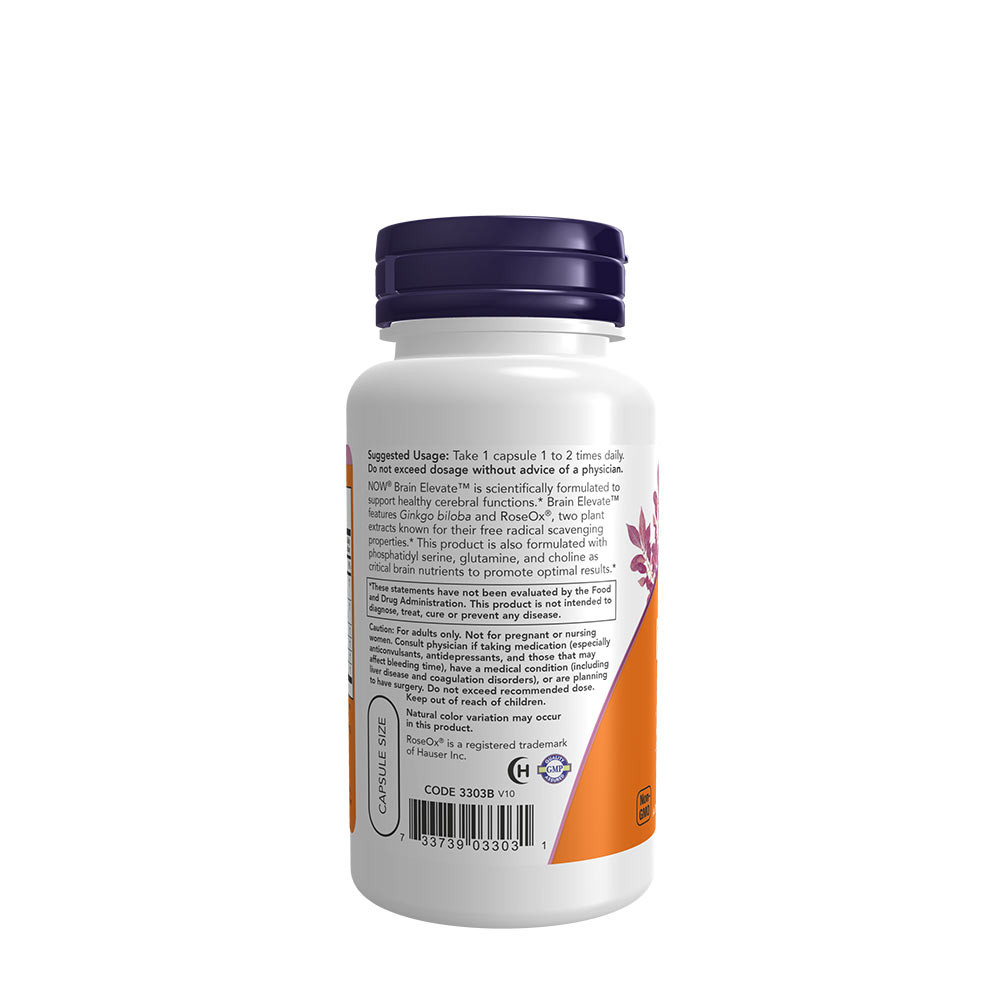 A NOW® Brain Elevate™ formulát az egészséges agyi funkciók támogatására fejlesztették ki. * A Brain Elevate™ hozzáadott Ginkgo Biloba és RoseOx® hatóanyaggal készült, amelyek a szabadgyök-gátló tulajdonságáról ismertek. * Ez a termék továbbá, foszfatidil-szerin, L-glutamin, és kolin felhasználásával készült, melyek kritikus fontosságú tápanyagok a normál agyi működés szempontjából. *