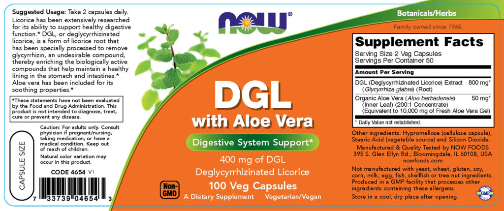 • 400 mg DGL (Deglycyrrhizinated Licorice)