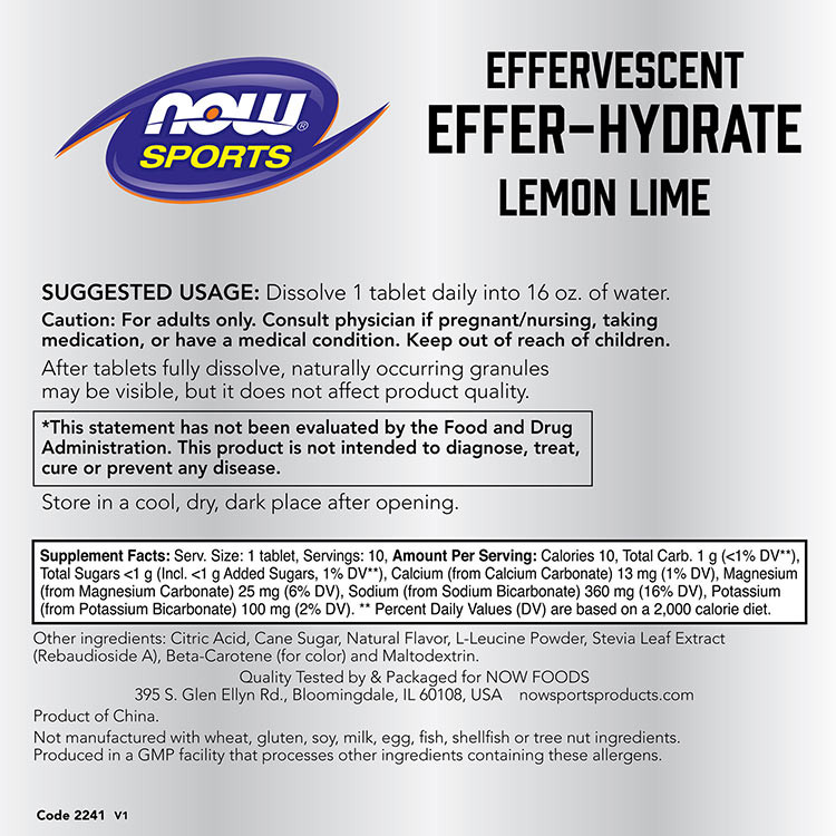 Now Foods Elektrolitos Pezsgőtabletta - Effer-Hydrate (10 Pezsgőtabletta, Citrom Lime)