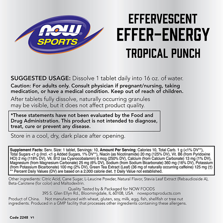 Now Foods Energizáló Pezsgőtabletta - Effer-Energy (10 Pezsgőtabletta, Trópusi Puncs)