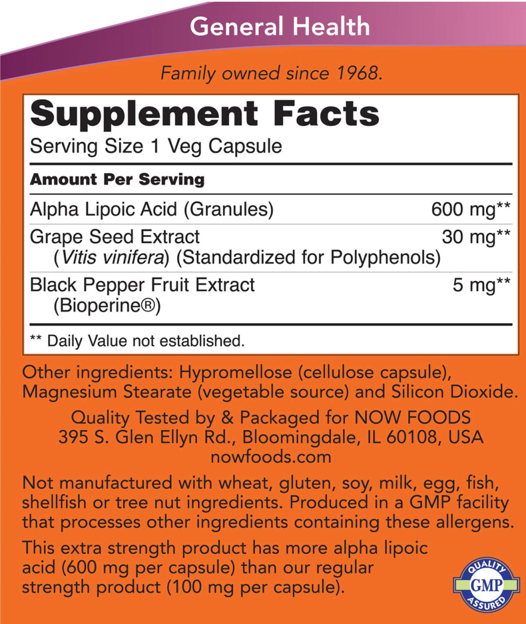 Now Foods Extra Erős Alfa-liponsav 600 mg (120 Veg Kapszula)