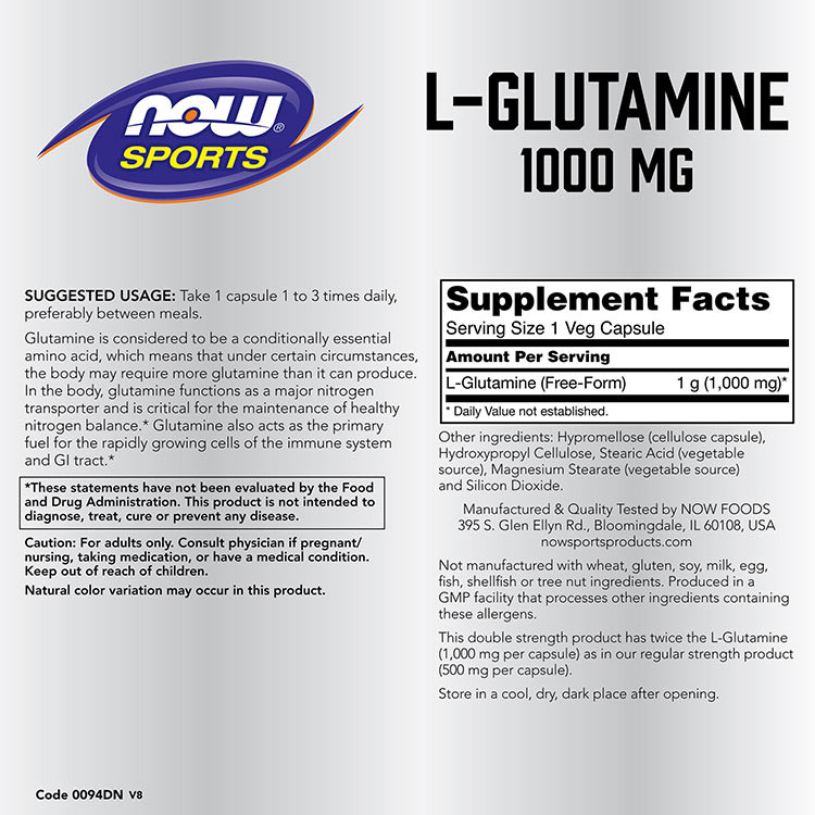 A glutamint feltételesen esszenciális aminosavnak tekintik, ami azt jelenti, hogy bizonyos körülmények között a test több glutamint igényelhet, mint amennyit képes előállítani. A szervezetben a glutamin fő nitrogén transzporterként működik, és kritikus jelentőségű az egészséges nitrogén-egyensúly fenntartásában. * A glutamin az immunrendszer és a gasztrointesztinális (GI) traktus gyorsan növekvő sejtjeinek elsődleges tápanyagforrása. * Ez az extra erősségű termék kétszer annyi L-glutamint (kapszulánként 1000 mg) tartalmaz, mint a szokásos erősségű termékek (kapszulánként 500 mg).