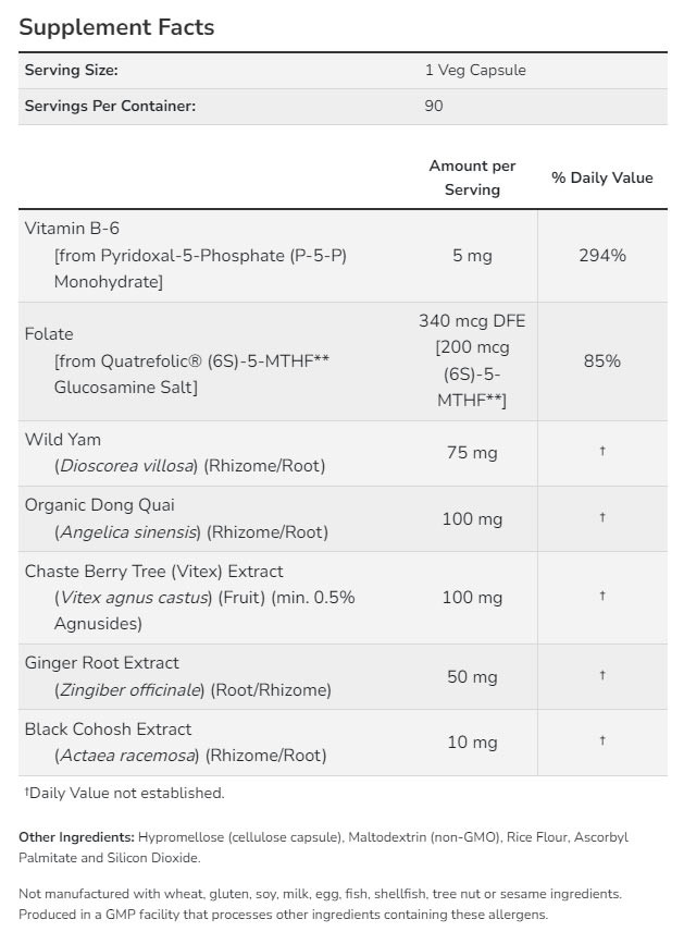 A NOW® Female Balance™ egy egyedülálló gyógynövényes támogató formula nők számára. A vad yam, a vitex, a dong quai, a gyömbér és a fekete cohosh növényi összetevőket a B-6-vitamin és a folsav táplálkozási támogatásával kombináltuk, hogy elősegítsük az egészséges női egyensúlyt.