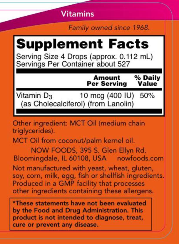 A NOW Liquid Vitamin D-3 folyékony, könnyen felszívódó formában tartalmazza ezt a kulcsfontosságú vitamint. A D-vitamin természetes formájában a táplálékkal kerül a szervezetbe vagy a bőrben keletkezik a nap ultraviola sugarainak hatására. Lévén élelmi forrásaink alapvetően nem bővelkednek D-vitaminban, és az emberek egyre inkább kerülik napsütést, ezért a szervezet számára szükséges mennyiség biztosításához D-vitamin pótlásra van szükség.