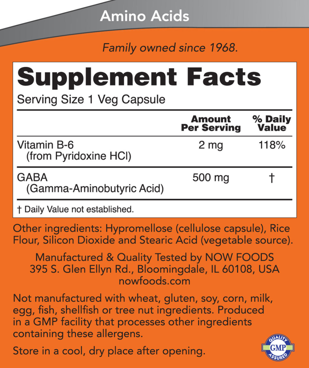 Now Foods Gaba 500 mg - Gamma-amino-vajsav (200 Veg Kapszula)