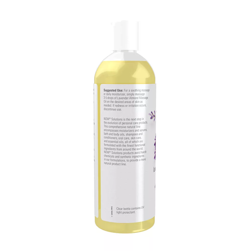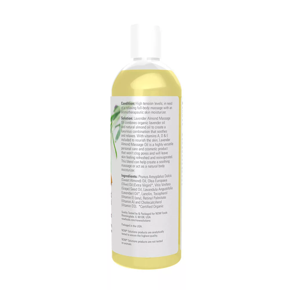 Megoldás: A NOW® Lavender Almond Massage Oil ötvözi az organikus levendulaolajat és a természetes mandulaolajat, hogy egy tökéletes kombinációt hozzon létre, amely megnyugtatja és ellazítja az egész testet. Az A, D és E vitaminokkal együtt, amelyek táplálják a bőrt, a Lavender Almond Massage Oil egy rendkívül sokoldalú testápolási és kozmetikai termék, amely nem tömíti el a pórusokat. Tökéletes választás egy élénkítő masszázshoz, vagy a mindennapi testápoláshoz.