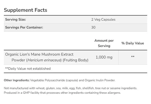 Now Foods Lion's Mane Mushroom (60 Kapszula)