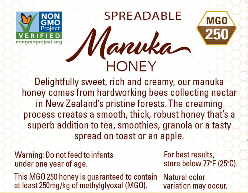 Ez az MGO 250 méz garantáltan legalább 250 mg/kg metilglioxált (MGO) tartalmaz.