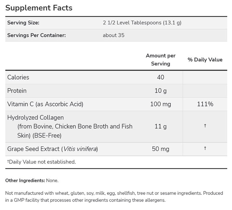 Az emlősökben a legnagyobb mennyiségben előforduló fehérjeként a kollagén a szervezet fehérjéinek körülbelül 30%-át teszi ki. A NOW® Multi Collagen három forrásból származó kollagént tartalmaz: marhahúsból, csirkehúsból és halból. Ez a kombinált termék a természetben előforduló I. és III. típusú kollagént marhahúsból, II. típusú kollagént csirke csontléből és I. típusú halból származó kollagént tartalmaz. A termékben használt szarvasmarha-kollagén BSE- és hormonmentes szarvasmarhából származik.