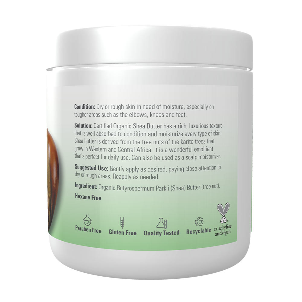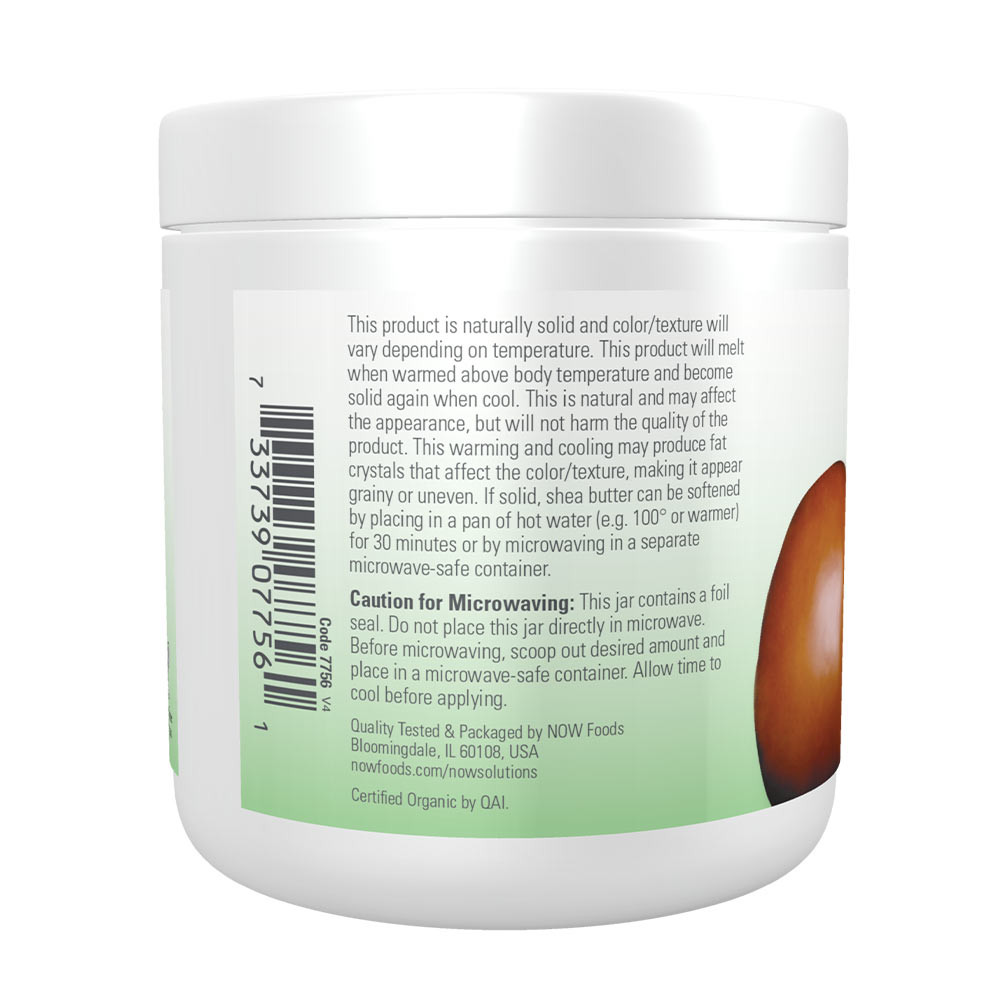 Megoldás: A tanúsítottan organikus NOW® Shea Butter, kellemes textúrával rendelkezik, amelyet a bőr könnyedén felszív, és minden típusú bőrt kondicionál és hidratál. A Shea-vaj, a Nyugat- és Közép-Afrikában növekvő Karité fa diójából származik. Ez egy csodálatos bőrpuhító, amely tökéletes a mindennapi használatra. Fejbőr hidratálóként is használható.