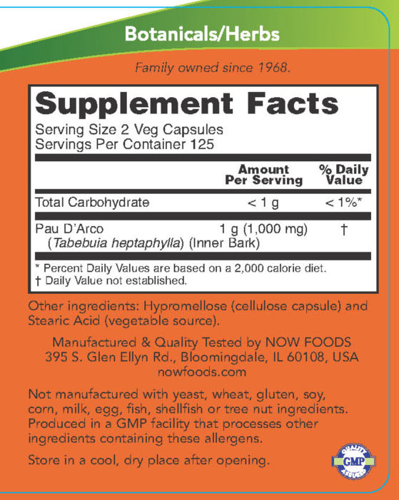 Now Foods Pau D' Arco 500 mg (250 Veg Kapszula)