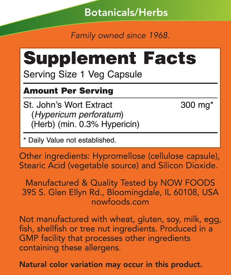 Now Foods St. John's Wort - Közönséges Orbáncfű 300 mg (100 Veg Kapszula)