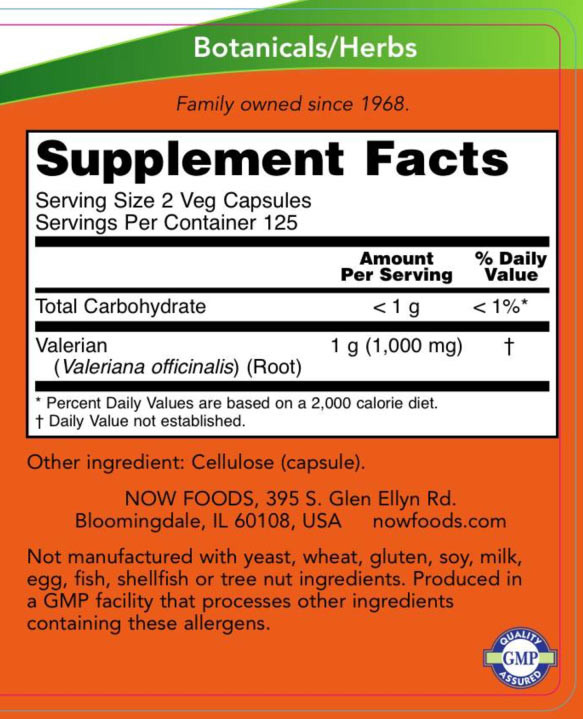 Now Foods Valerian Root - Macskagyökér 500 mg (250 Veg Kapszula)