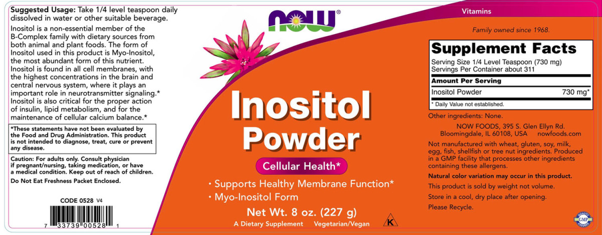 Az inozitol a B-vitamin családba tartozó nem esszenciális tápanyag amelyhez a szervezet állati és növényi táplálékforrásokból is hozzájuthat. A termék a táplálékban leggyakrabban előforduló inozitol formát, mio-inozitolt tartalmaz. Az inozitol minden sejt membránjában megtalálható, legnagyobb mennyiségben az agyban és a központi idegrendszerben fordul elő, ahol fontos szerepet tölt be az ingerületátvivő anyagokhoz köthető jelátviteli folyamatokban.* Az inozitol nélkülözhetetlen az inzulin megfelelő működéséhez, a lipidek lebontásához és a sejtek kalcium-egyensúlyának fenntartásához is.*