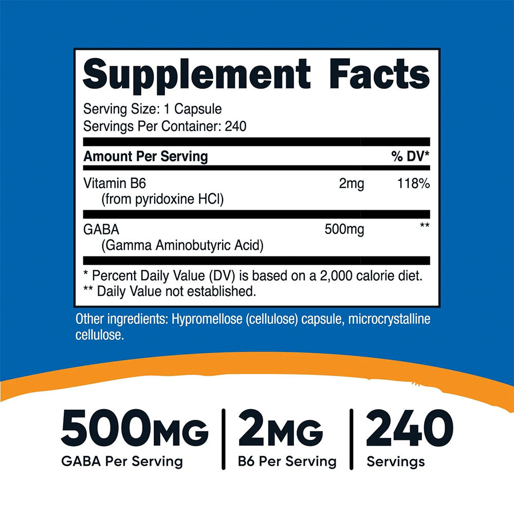 Nutricost GABA + B6 500 mg (240 Kapszula)
