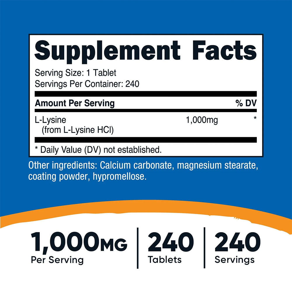 Nutricost L-Lysine Tablets (240 Tabletta)