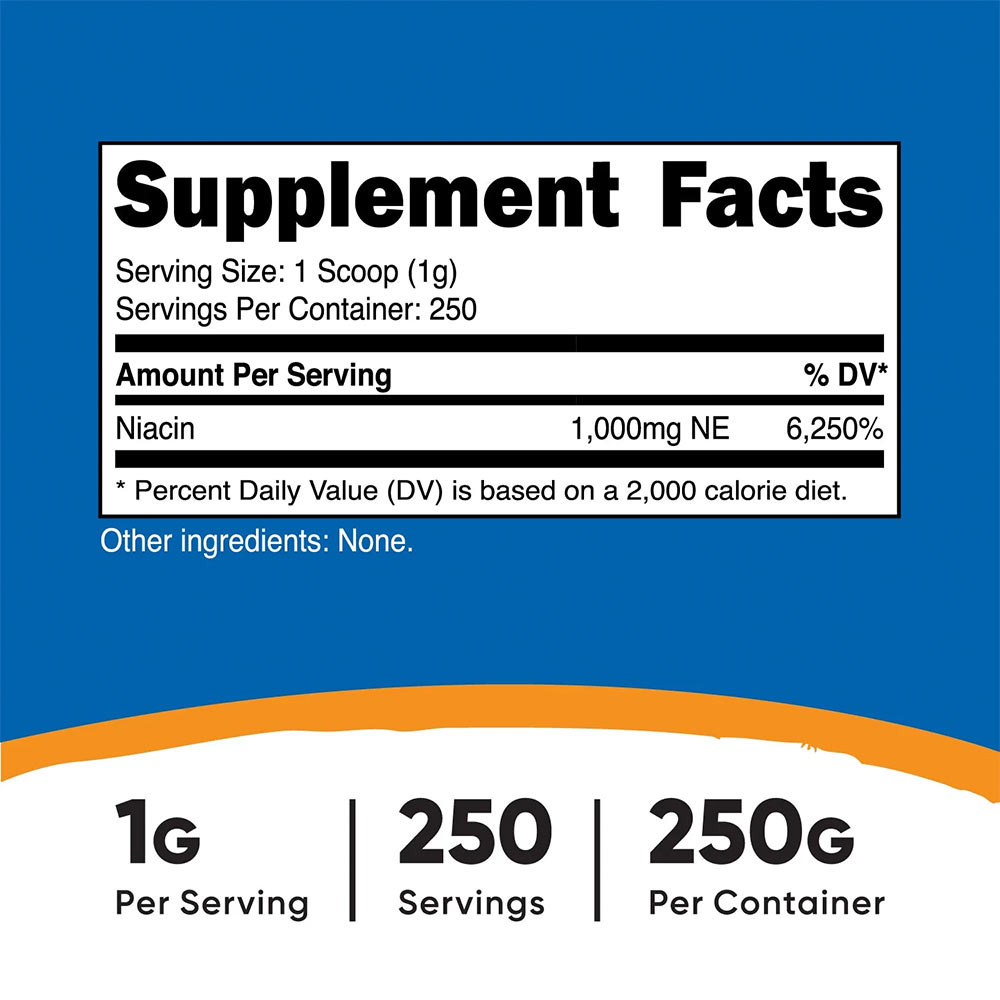 Ideiglenes kipirulás, viszketés, kiütés vagy gyomorzavar léphet fel. Májfunkciós vizsgálat ajánlott a niacin napi 500 mg-ot meghaladó mennyiségű fogyasztása esetén. A köszvényes vagy májbetegségben szenvedő személyeknek nem ajánlott nagy dózisú niacin szedése. Terhesség vagy szoptatás esetén, vagy amennyiben bármilyen gyógyszert fogyasztasz, vagy bármilyen betegségben szenvedsz, a használat előtt konzultálj kezelőorvosoddal. Az étrend-kiegészítő nem helyettesíti a vegyes étrendet. Az ajánlott napi fogyasztási mennyiséget ne lépd túl. Gyermekek elől elzárva tartandó. Ne fogyaszd el a terméket, ha a védő fólia hiányzik vagy sérült.