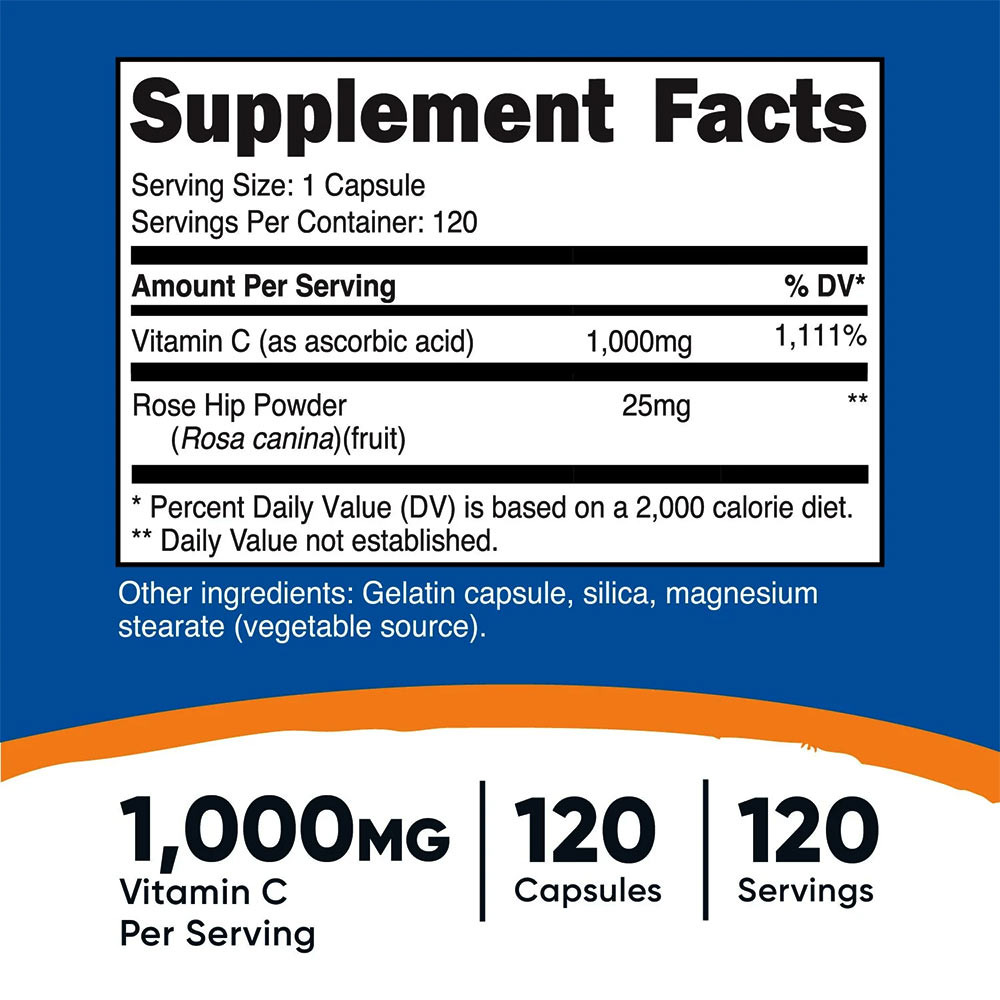 Nutricost Vitamin C with Rose Hips - C-Vitamin Csipkebogyóval (120 Kapszula)