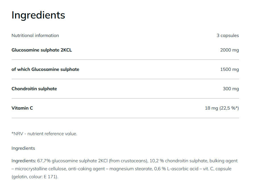 A kondroitin-szulfát a glükozaminhoz hasonlóan csökkenti az ízületi fájdalmat, duzzanatot, gyulladást, és fokozza az ízületi mozgékonyságot.