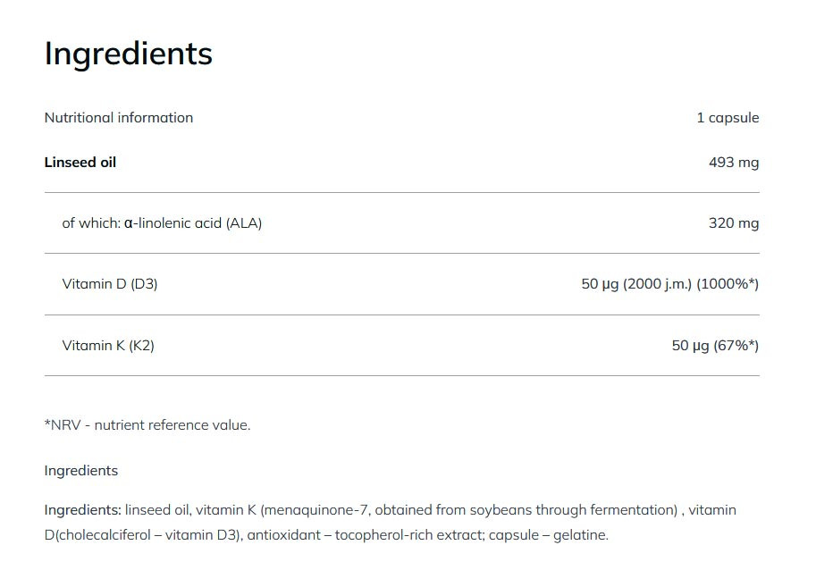 A napi ajánlott adagot ne lépd túl. Az étrend-kiegészítő nem helyettesíti a vegyes étrendet. Kiegyensúlyozott táplálkozás és az egészséges életmód ajánlott! A terméket nem fogyaszthatják K-vitamin antagonistákat tartalmazó véralvadásgátlót (pl.: warfarin és acenokumarol) szedő személyek. Ne használj más D- vagy K-vitamin tartalmú készítményeket. NE használd a termék bármely összetevőjével szembeni túlérzékenység esetén.
