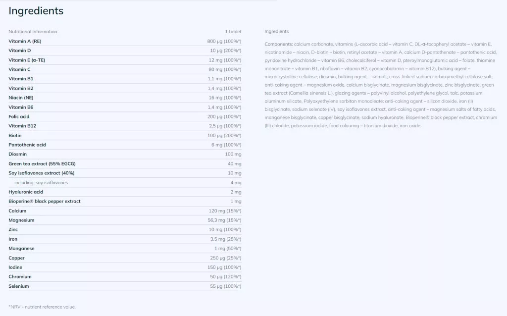 Mert tartalmaz minden olyan vitamint, ásványi anyagot, növényi kivonatot, amire szüksége lehet azoknak a nőknek, akik az aktív életmód és a kiegyensúlyozott étkezések mellett, még egy kis plusszal hozzájárulnának a szervezetük optimális működéséhez.