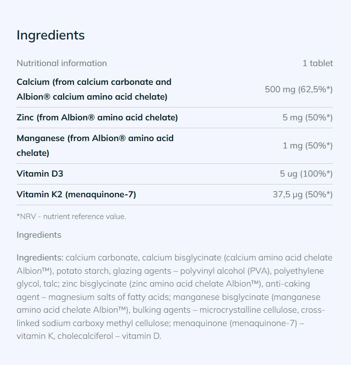 Ellenjavallatok: Túlérzékenység bármely összetevővel szemben. Nephrolithiasis, veseelégtelenség és hyperparathyreosis esetén a terméket orvosával konzultálva használd. Ne használd együtt más, magas kalcium-, cink- vagy D-vitamin-tartalmú termékekkel. Kisgyermekeknek nem ajánlott a fulladásveszély miatt.