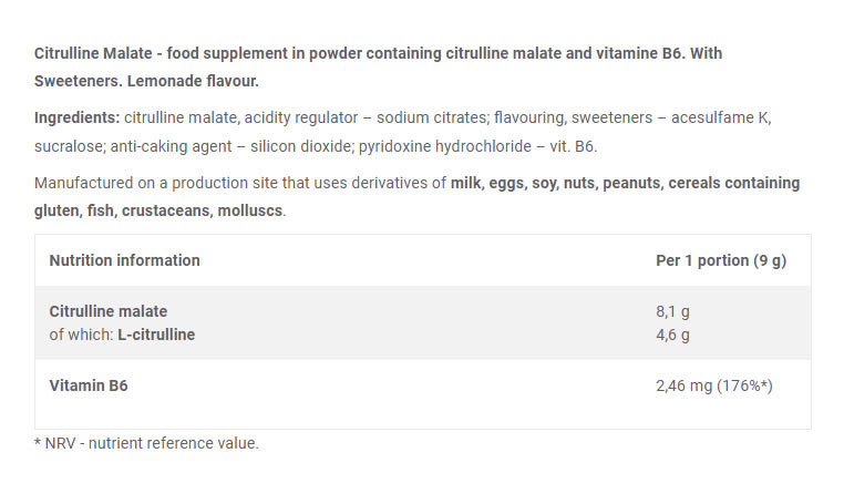 • Az étrendedet hatalmas adag citrullin-maláttal kiegészítve - akár 8,1 g, beleértve 4,6 g tiszta citrulint is.