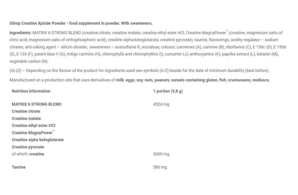 Ahelyett, hogy félmegoldásokat keresnél, válassz olyan kiegészítőt, amely valódi előnyöket biztosít! Fedezd fel a Creatine Xplode-ot - az Olimp Laboratories szakemberei által a modern gyártási technológia alkalmazásával készített fejlett formulát. A tisztaságra és a felhasznált nyersanyagok nehézfémmentességére vonatkozó kutatások, valamint a globális gyártási szabványoknak való megfelelés lehetővé tette, hogy olyan kiváló minőségű étrend-kiegészítőt kapjunk, amely nemcsak valódi hatásokat, hanem biztonságos használatot is garantál. A terméket olyan felnőtteknek szánjuk, akik nagy intenzitású fizikai gyakorlatokat végeznek.