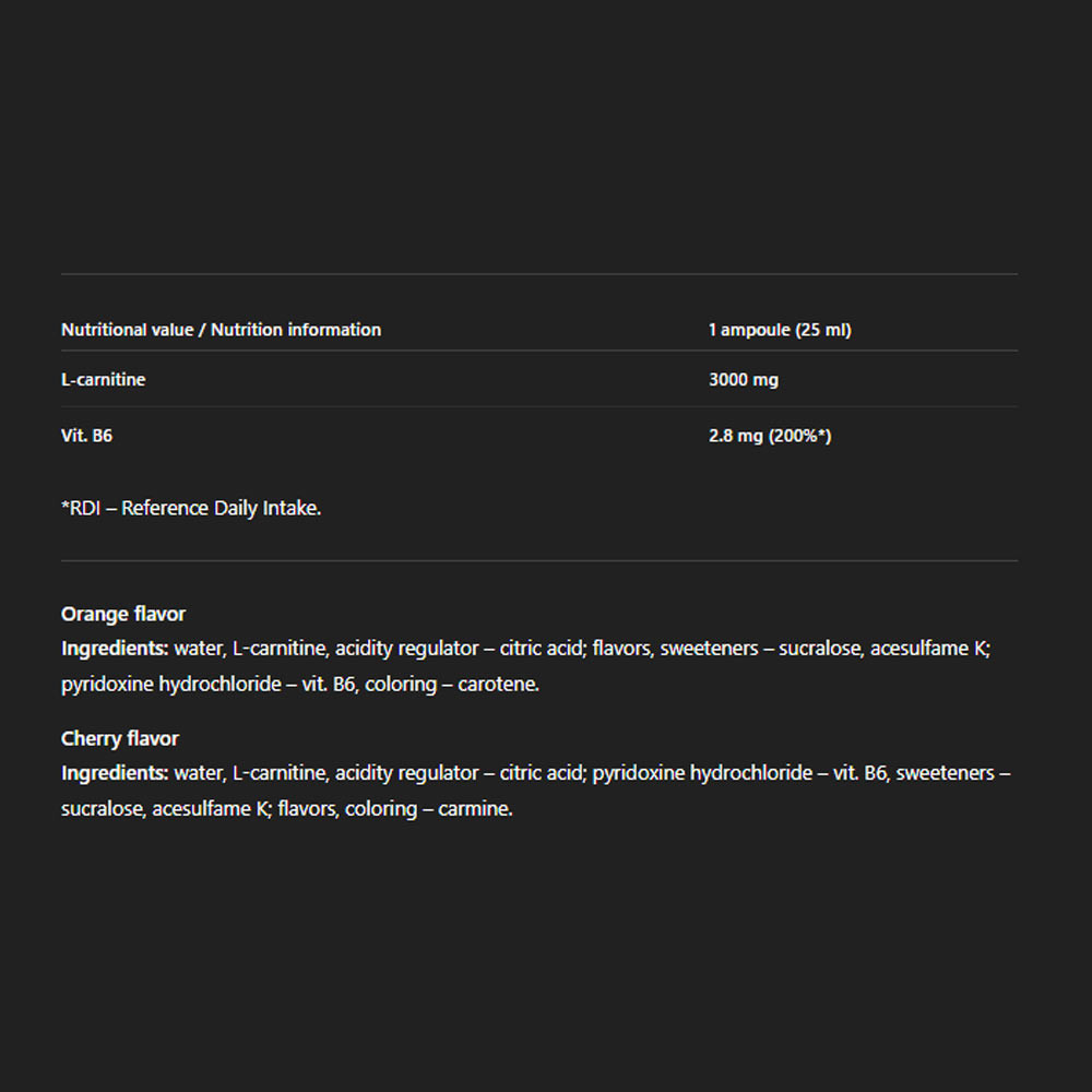 A kiegészítő egyik kiemelkedő tulajdonsága a folyékony forma. Az alkalmazott Liquid Technology formula lehetővé teszi az L-karnitin és a B6-vitamin szinte azonnali felszívódását. Emellett a kis ampulla könnyen elfér a zsebben, így bármikor használható, amikor szükséged van rá.