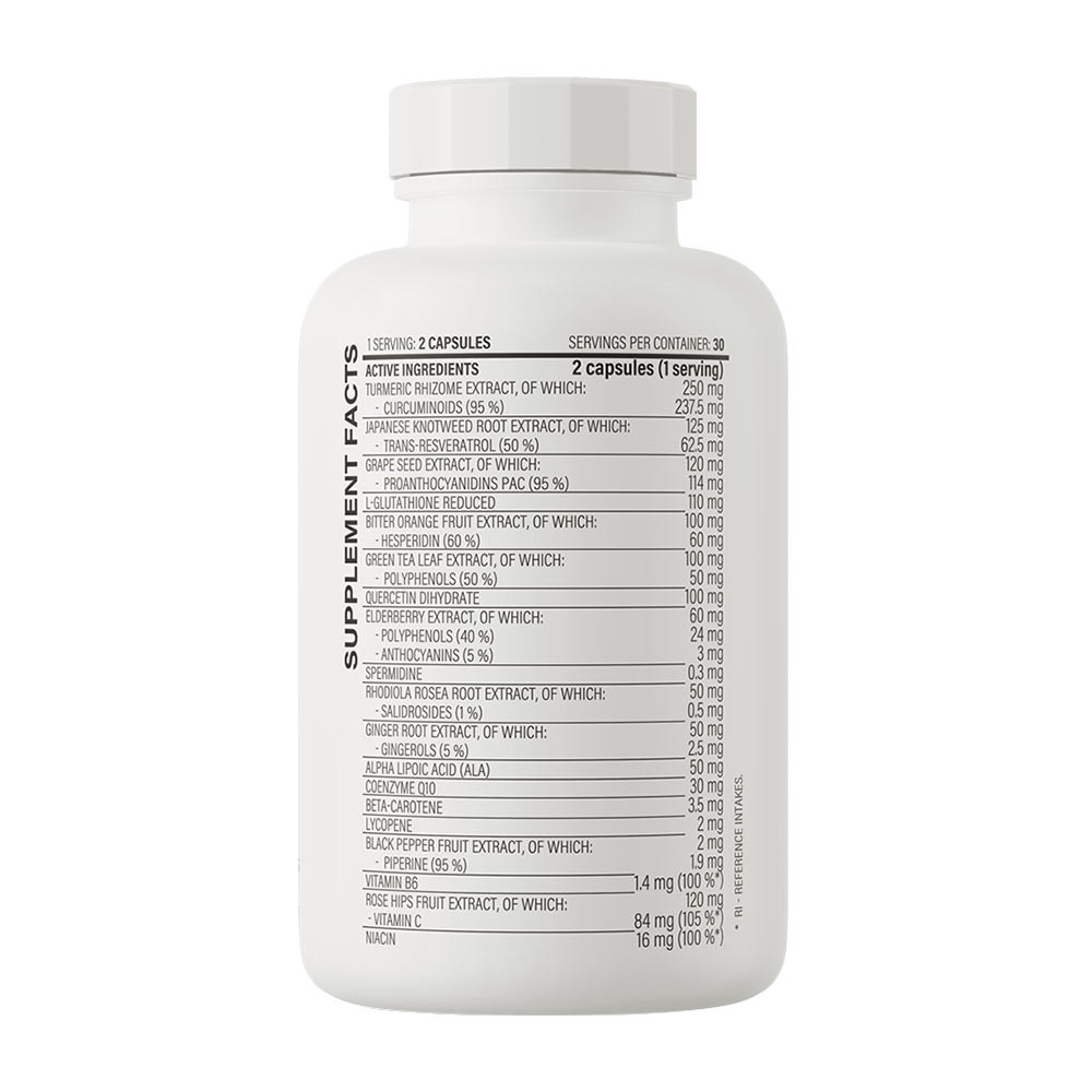 • Értékes hatóanyagok forrása - Az étrend-kiegészítő rengeteg biológiailag aktív vegyületet tartalmaz, többek között a 95% kurkumarizómára standardizált kurkuminoidok kivonatát, a 70% C-vitaminra standardizált csipkebogyó kivonatot, az 50% polifenolokra standardizált zöldtealevél kivonatot, vagy a likopint, a Q10 koenzimet és a B6-vitamint.