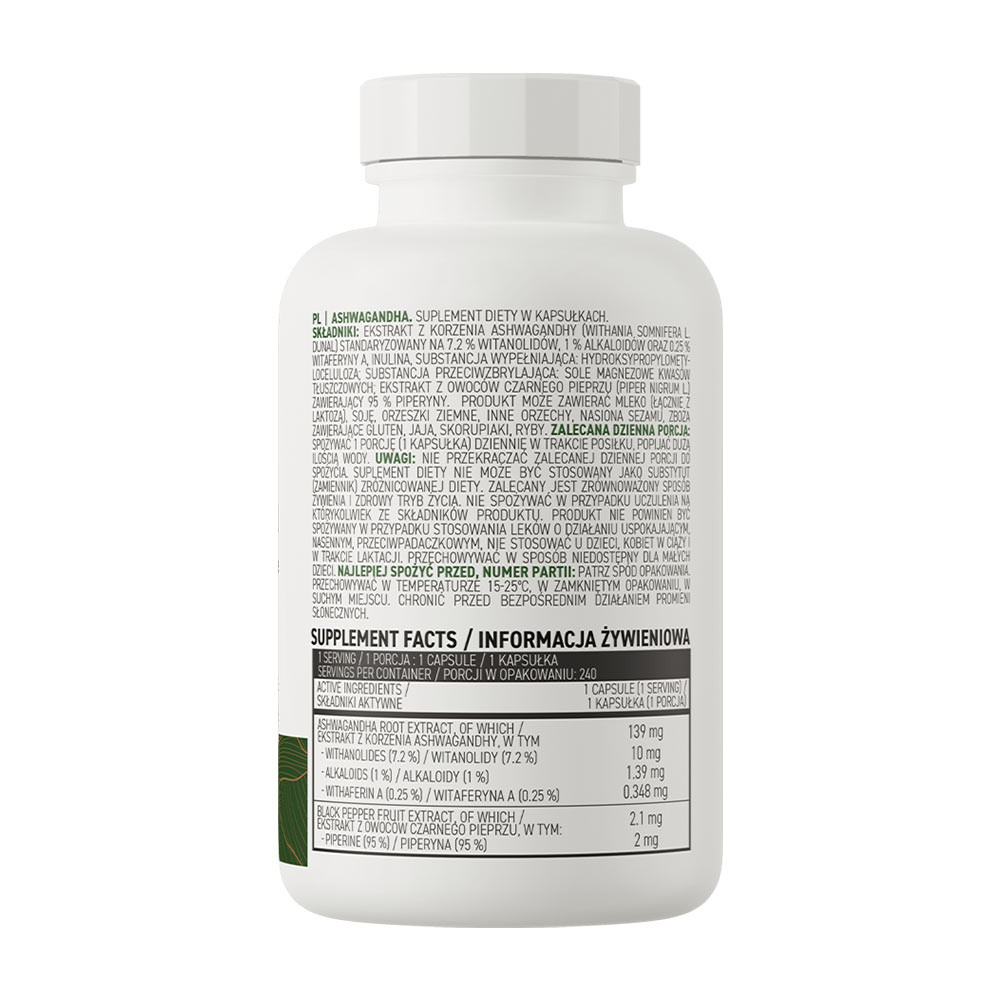 Ashwagandha gyökérkivonat - A Solanaceae családba tartozó növény gyökerének kivonata, más néven Withania somnifera vagy indiai ginzeng. A friss ashwagandha gyökeret intenzív aroma és értékes anyagok bősége jellemzi - elsősorban vitanolidok, alkaloidok és withaferin A forrása, amelyek tartalma az OstroVit készítményben használt növényi kivonatban standardizált.