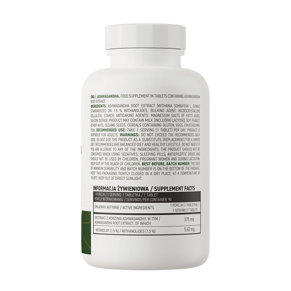 • 1,5% withanolidok DER 6:1 standardizált ashwagandha gyökér kivonatot tartalmaz - Az étrend-kiegészítő egy adagja 375 mg kivonatot biztosít a szervezet számára.