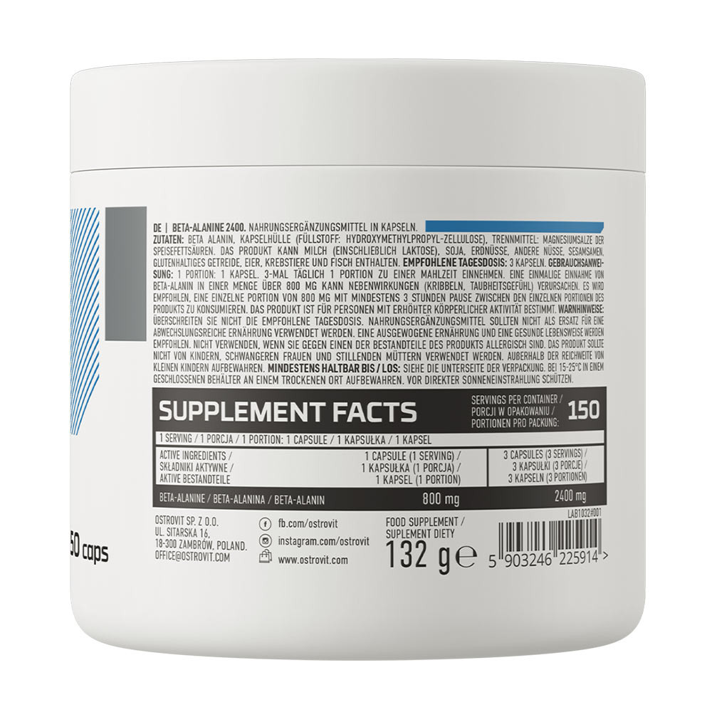 Az OstroVit Beta-Alanine 2400 mg egy kiváló minőségű étrend-kiegészítő, amely béta-alanin forrás.