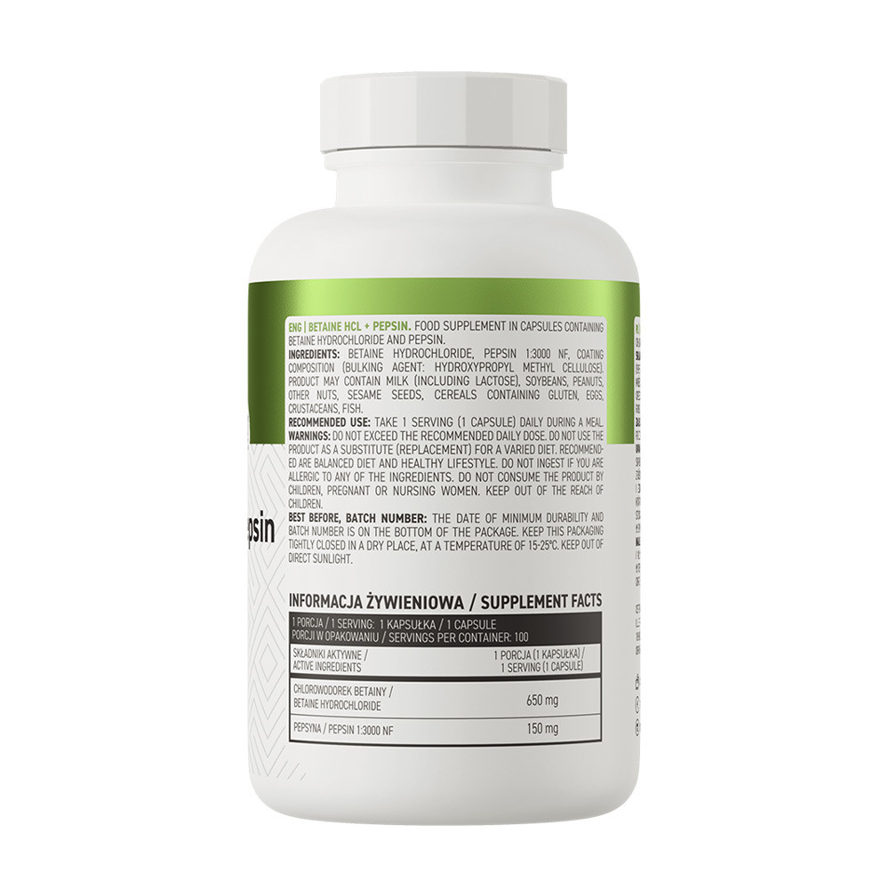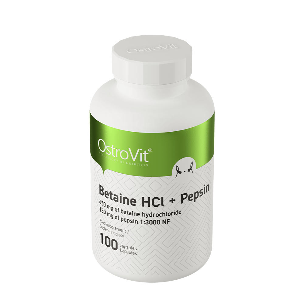 Az OstroVit Betaine HCl + Pepsin egy étrend-kiegészítő, amely pepszin és betain-hidroklorid forrása.