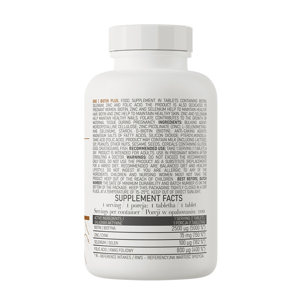 Az OstroVit Biotin PLUS egy modern étrend-kiegészítő biotint, szelént, cinket és folsavat tartalmazó tablettákban.