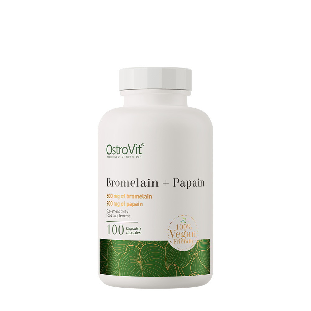 Az OstroVIt Bromelain + Papain VEGE egy kiváló minőségű étrend-kiegészítő, amely bromelain és papain forrást biztosít. Könnyen lenyelhető kapszula formájában kapható vegán készítmény, amelyet olyan tudatos fogyasztók számára hoztak létre, akiknek fontos, hogy a napi étrendjüket értékes összetevőkkel egészítsék ki.