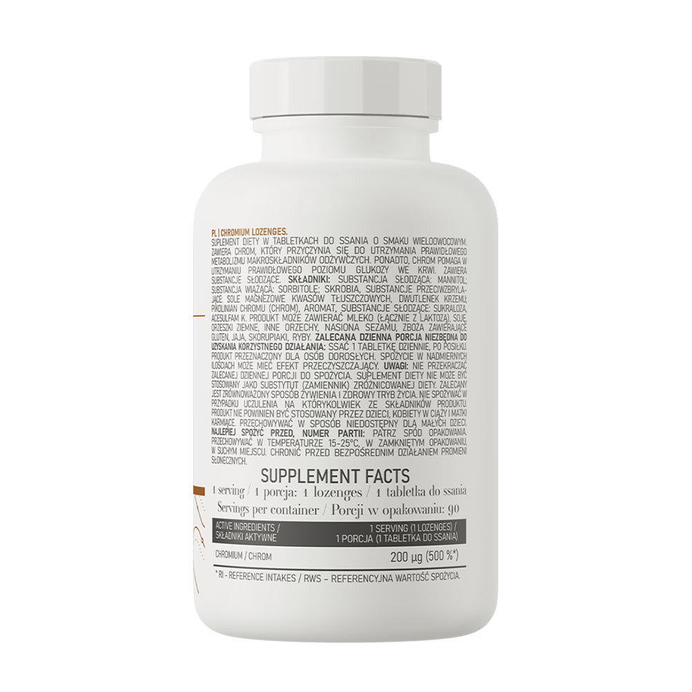 Az OstroVit Chromium Lozenges egy kiváló minőségű étrend-kiegészítő, amely krómforrás. Ez egy finom, gyümölcsös ízű, cukorka formájában kapható készítmény, amely nem tartalmaz hozzáadott cukrot. Ez a termék a tudatos fogyasztók számára készült, akik szeretnék kiegészíteni a napi étrendjüket egy értékes összetevővel.