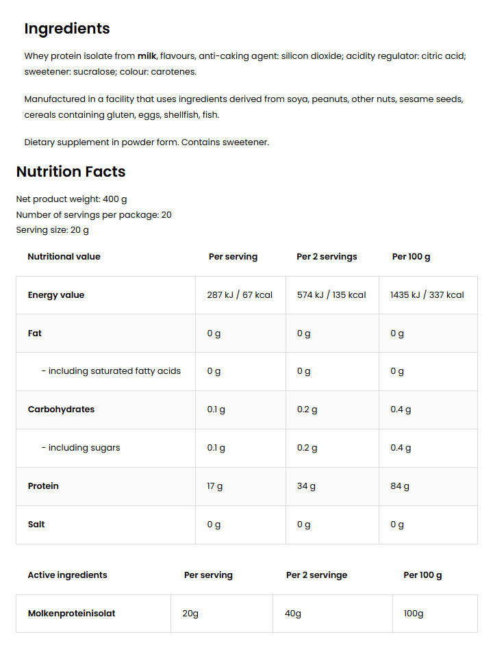 Kiváló minőségű étrend-kiegészítő, amely tejsavófehérje-izolátum formájában fehérjeforrást biztosít.