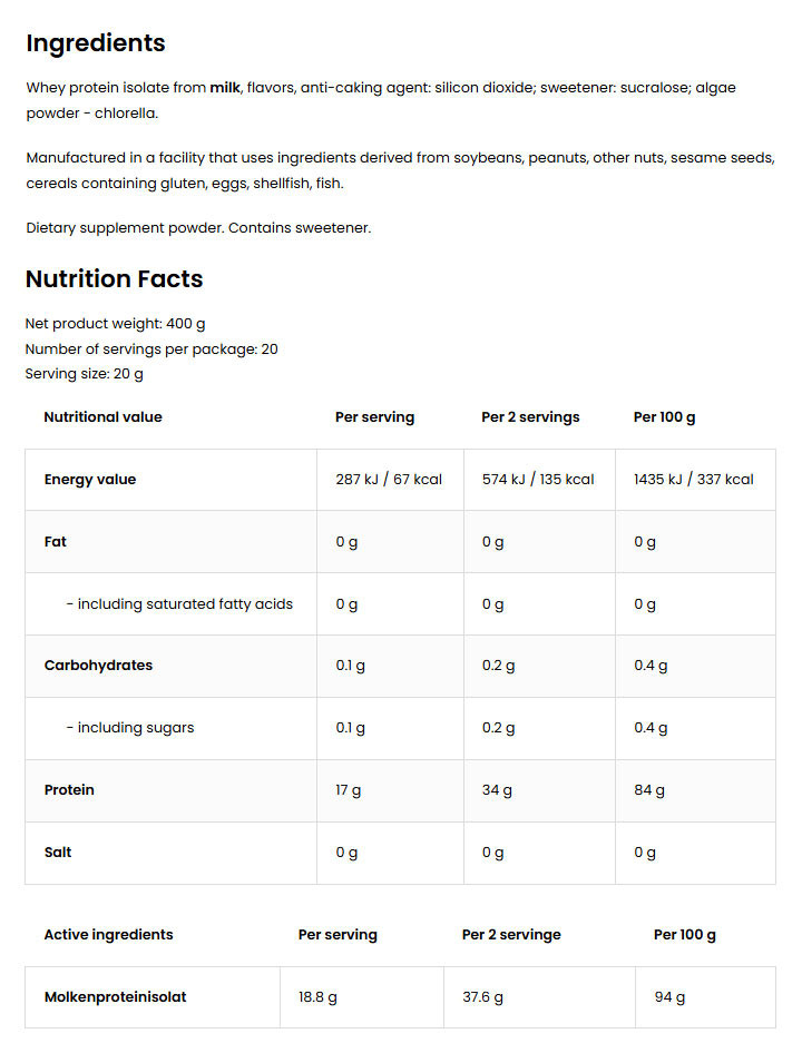 Kiváló minőségű étrend-kiegészítő, amely tejsavófehérje-izolátum formájában fehérjeforrást biztosít.
